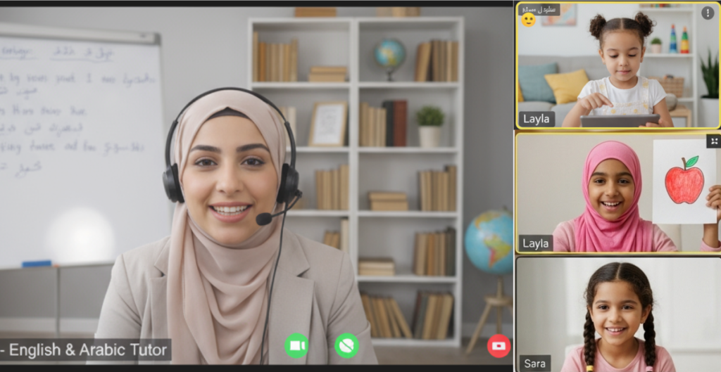 فصول مباشرة بقيادة معلمين معتمدين، في بيئة تفاعلية ومحفِّزة تنمّي مهارات طفلك اللغوية بطريقة مُخطّطة، ممتعة، وملائمة لكل مستوى